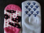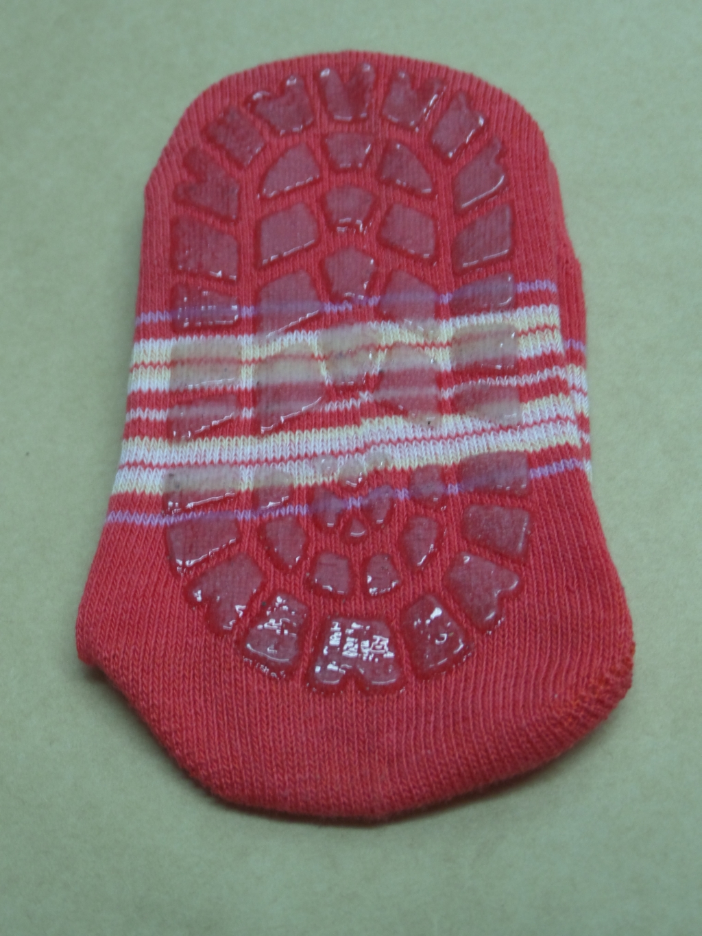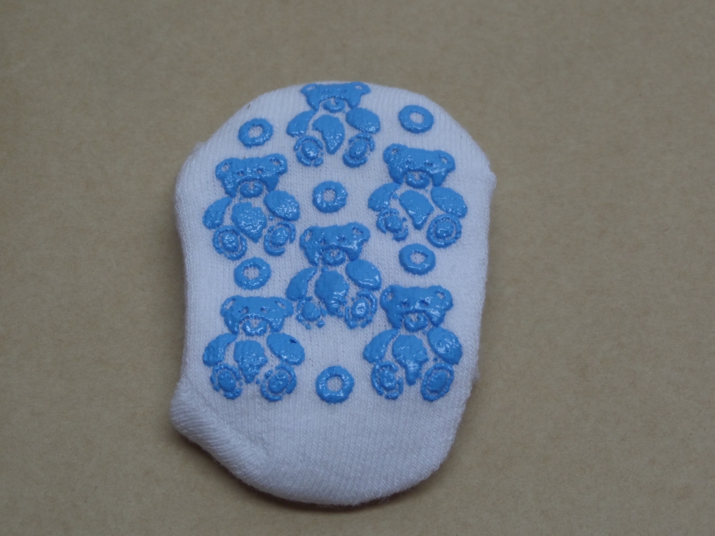 Drukujemy skarpety dziecięce, skarpety na trampoliny, nakładamy ABS na stopki i kolanka dziecięcych rajstopek itp.