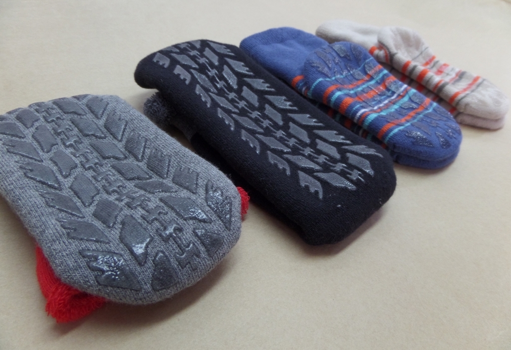 Drukujemy skarpety dziecięce, skarpety na trampoliny, nakładamy ABS na stopki i kolanka dziecięcych rajstopek itp.